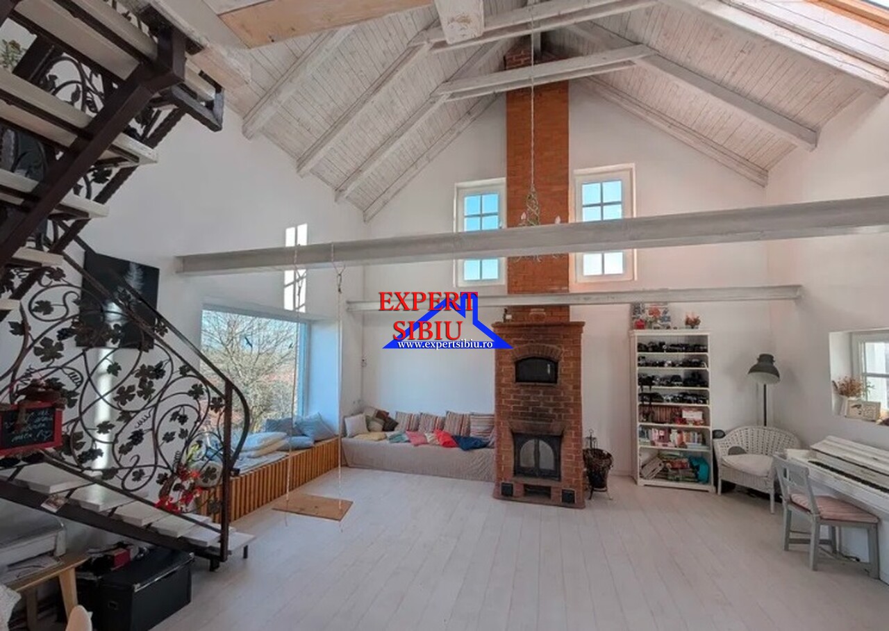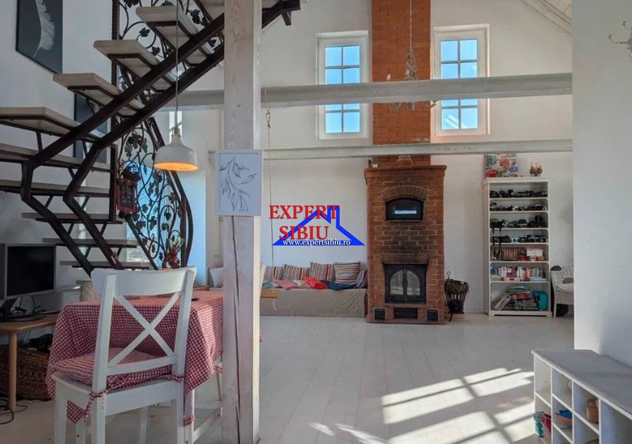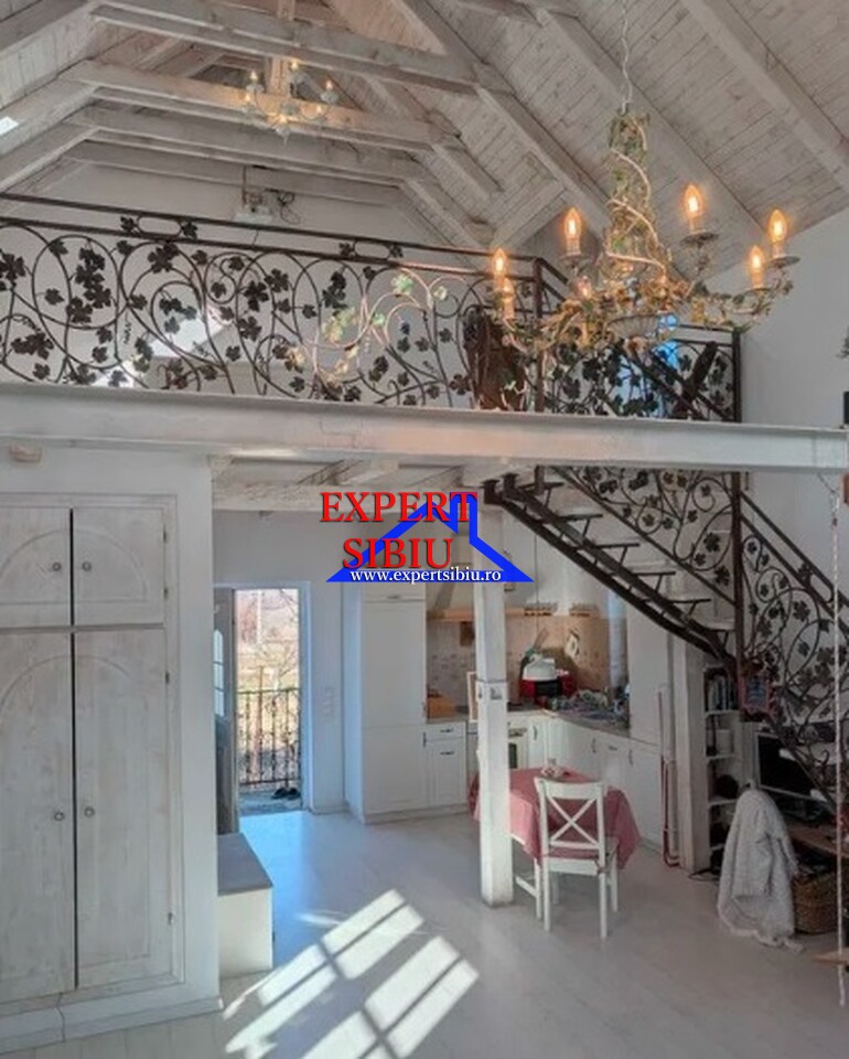 •Compartimentare: open-space generos, dormitor la mansardă, bucătărie complet utilată, baie
