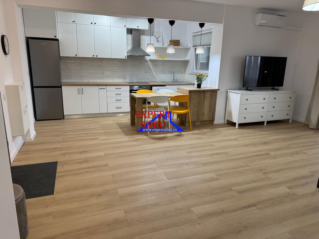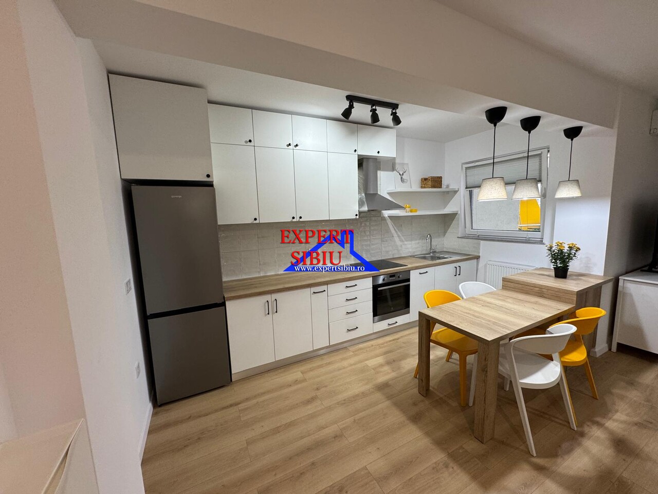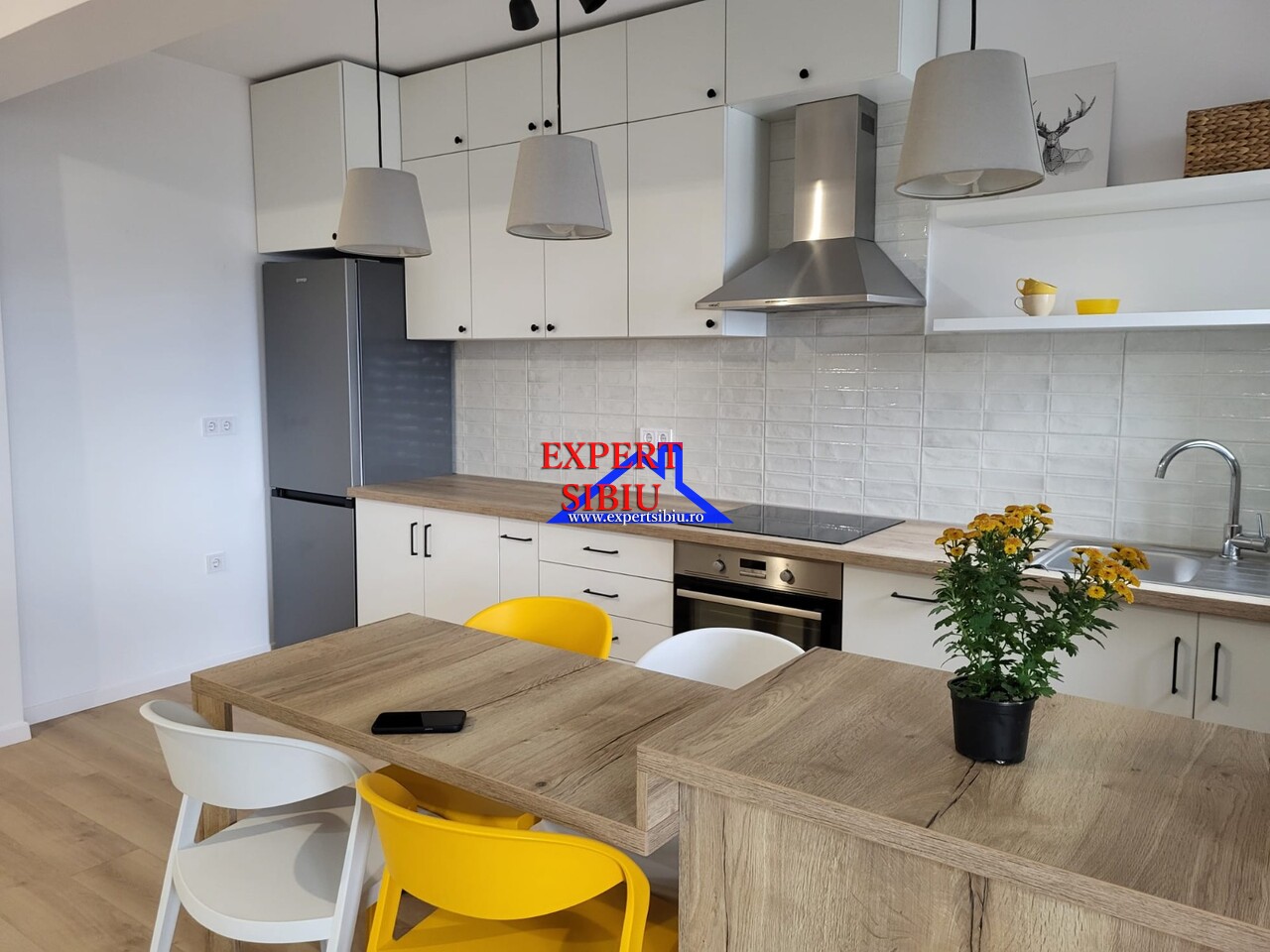 INCHIRIEZ APARTAMENT 2 camere,constructie noua,aflat la prima inchiriere, situat la etajul 9 al unui imobil P+11, cu 2 lifturi,in zona P-ta Rahovei (str.Aleea Sevis),cu o suprafata utila de aproximativ 58 mp.Apartmentul ofera vedere spre munte si oras, magazine in proximitatea sa (Supeco, Pepco, Dedeman si Shopping City Sibiu), usor accesibil si intr-un cartier linistit, aproape de Gradinita nr.43 si Liceul Noica. Apartamentul are finisaje moderne si contine toate necesarele,se inchiriaza mobilat si utilat.Compartimentarea este dispusa astfel: living spatios open space cu bucataria si 1 dormitor decomandat,baie,hol,balcon. Imbunatatiri: gresie, faianta, usi interioare moderne, use la intrare metalica, geamuri termopan cu tamplarie PVC, CT proprie, cablu TV , masin de spalat vase,termoizolatie exterioara,parcare privata. Pret: 460 Euro + garantie.